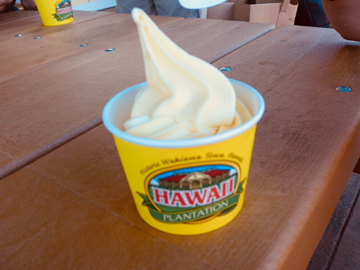 ドールのソフトクリームを購入する際は、全てパイナップル味で一緒なので同じ種類を2個頼めば、1個無料になるため、家族でシェアすれば、十分満足できますよ。今回は全種を1人づつ注文したため食べきれず半分以上残してしまいました…。