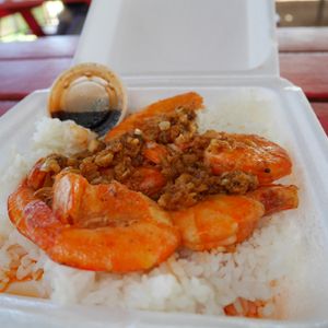 マラサダ、ガーリックシュリンプ、フリフリチキン、パインアイス・・どれも一人前を2人でシェアして食べたのですが常にお腹いっぱい!