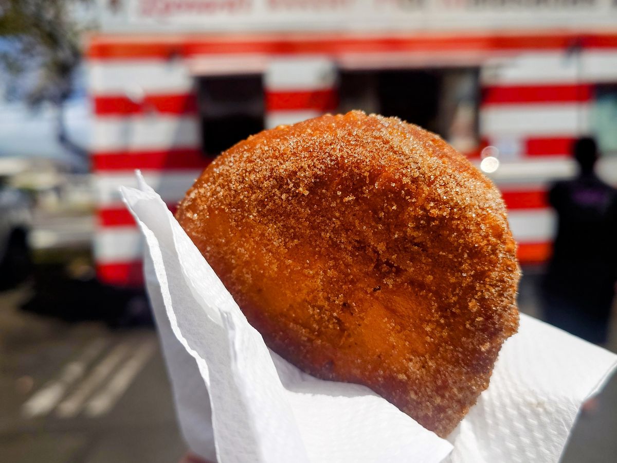 マラサダは、砂糖をまぶしただけのオリジナルかシナモンが選べます。(写真はオリジナル)