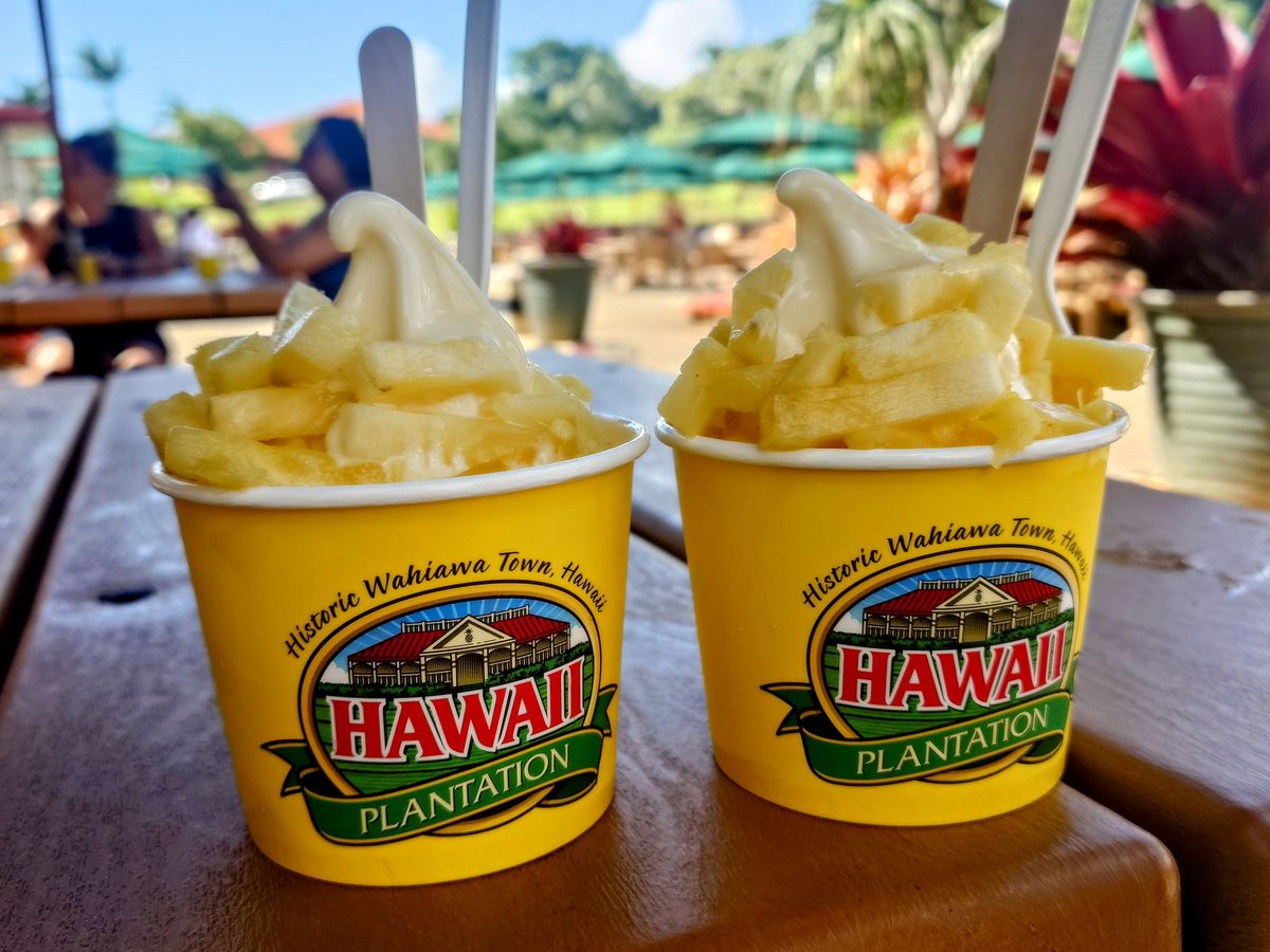 他はドライバーさんとお話ししながらのドライブツアー、最後に行ったドールのパイナップル園のソフトクリームはアメリカンサイズでしたが美味しいくてペロリと食べられました