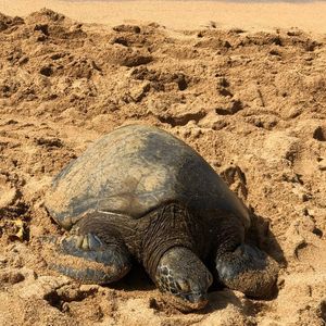 亀の甲羅干しを見に行けば、満潮で亀が1匹しかおらず、外れの多い残念なツアーとなってしまいました。でも一匹でも亀がいて良かったです。