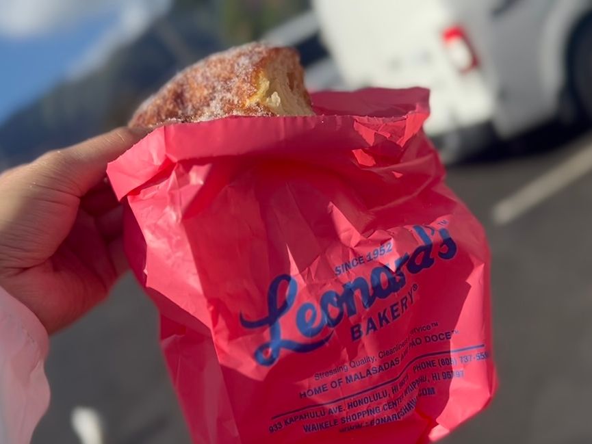 レンタカーを借りていっても現地で、1時間以上待ちな有名店も事前にオーダーしてくださっているので待つことなく、スムーズにマラサダや、レナーズのガーリックシュリンプもいただけました。