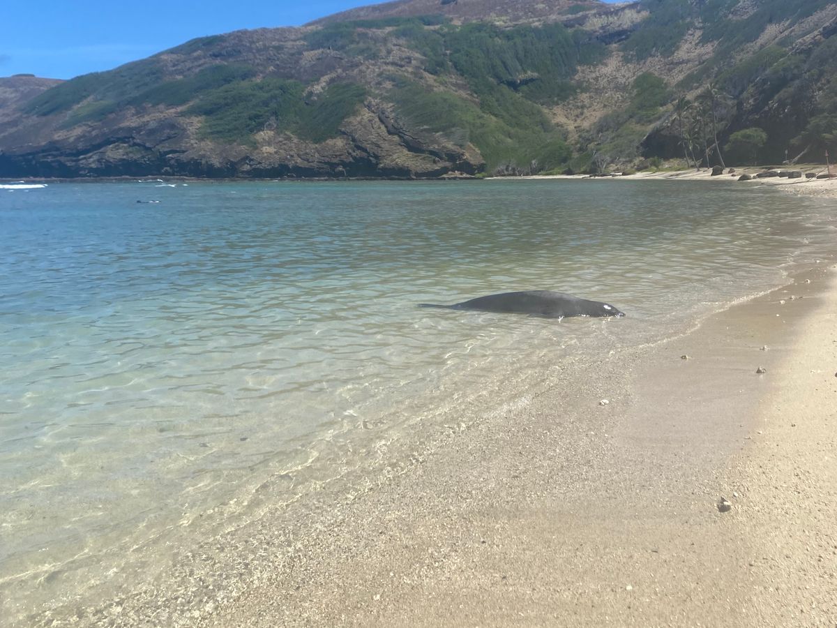 ハワイアンモンクシールがたまたまビーチに来ててラッキーでした。初の生モンクシールでした。