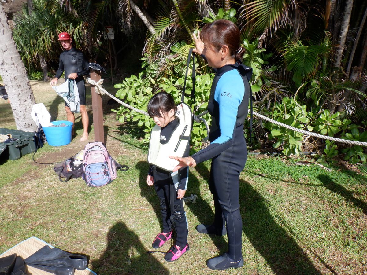 ハナウマ湾に到着してからは、ダンさんの奥様のチエコさんが、ハナウマ湾の特徴や、シュノーケリングのこと、準備を詳しく丁寧に伝えてくれたので、安心してトライしていくこともできました。小学2年生の娘が最年少で、最初はできるかなと半分心配していましたが、チエコ先生が終始サポートをしてくださり、我が家の中では一番上手にシュノーケリングができるようになり、「楽しかったよ。」と満面の笑みでした。