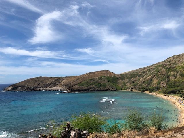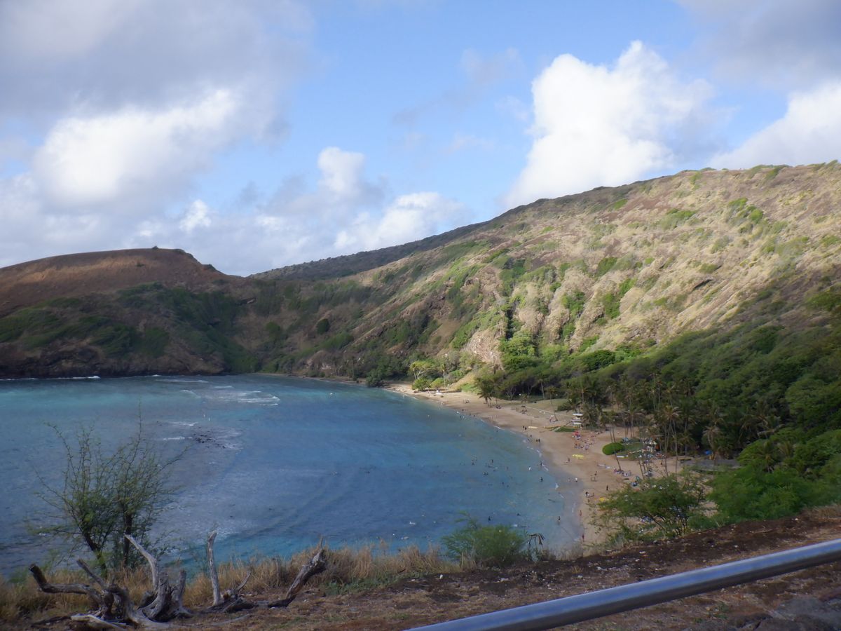 まず最初にハナウマ湾に行きました。ハナウマ湾のキレイさは思っていた以上で、海の透明度にビックリしました。全米のベストビーチに二度もなった様で、ハワイに来たなら、ここは外せないスポットだと思います。シュノーケルはガイドのカオルさんの丁寧な指導のお陰で、何の不安もなく楽しめました。また、シュノーケル中はかわいい子ガメを、ビーチではアザラシが見る事が出来ました。