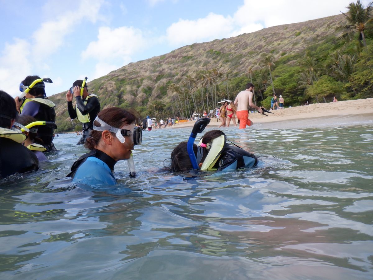 ハナウマ湾ではシュノーケルが初めてのようでしたが最後は潜れるようになり凄かったですよ。