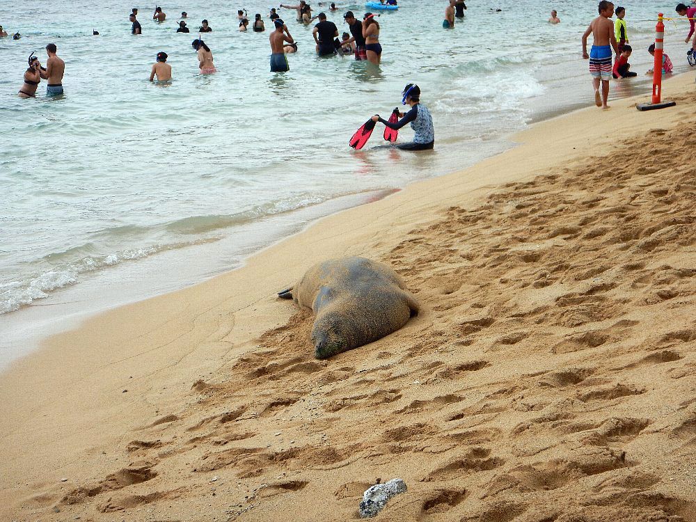 以前は年に数回しか見れないアザラシでしたが、最近はよくハナウマ湾にお昼寝をしに来てくれるようになりました。