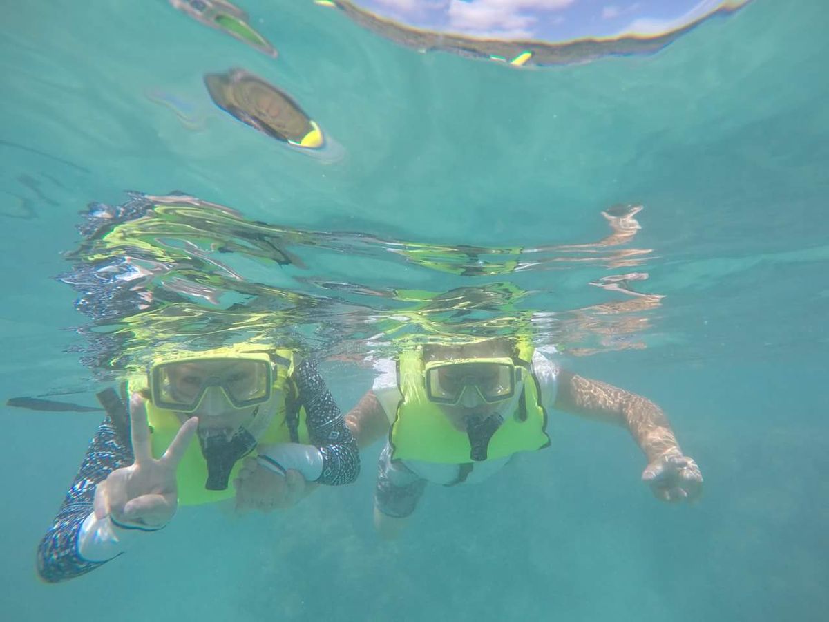 カナヅチで泳いだことのなかった、夫が初めて泳げました!ガイドさん達の丁寧なサポートもあり、カメも、見れて最高でした!