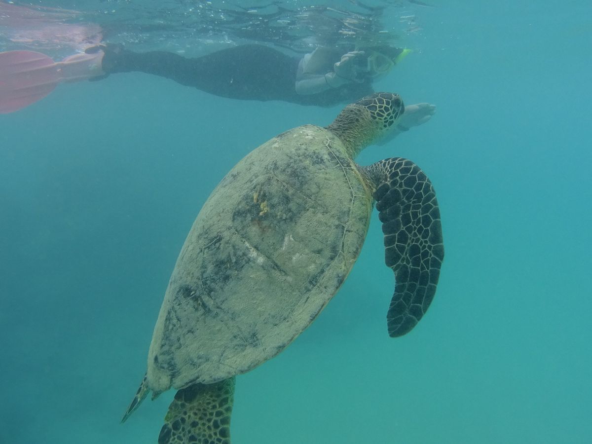 画像にホヌが現れたので思わず申し込みましたが実際には遭遇できず。浅瀬でチャプチャプのシュノーケリングに終始し少しがっかり。でもスタッフの皆さんはとても親切でした。シュノーケル初心者には適したツアーだと思います。