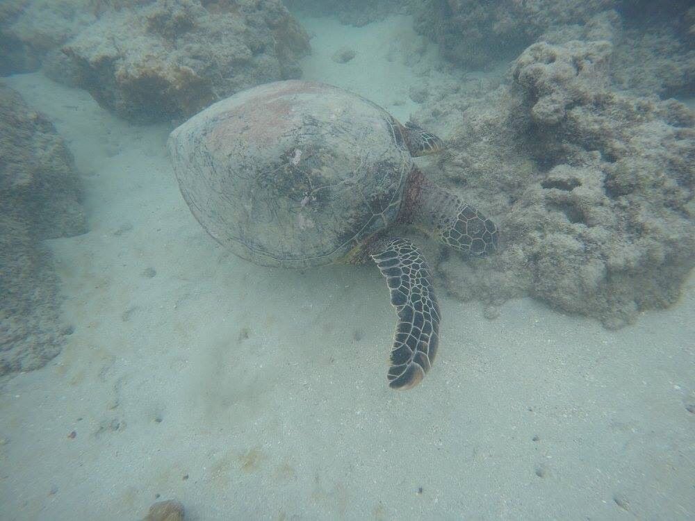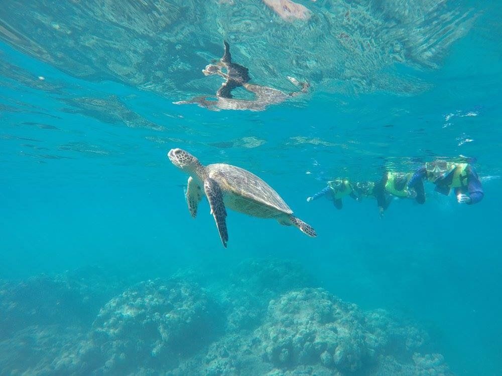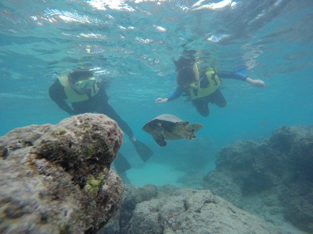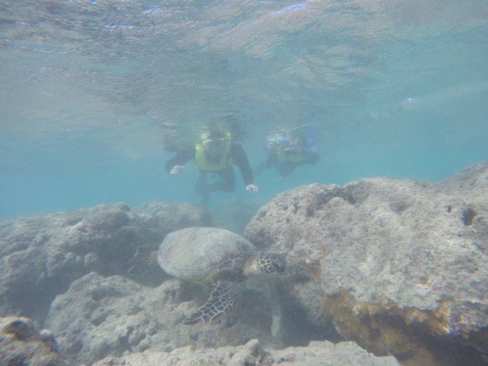 自分たちだけではカメに会うこともできなかったですし、カメや魚の大群と一緒に泳ぐなんて貴重な体験をできて、大満足のシュノーケリングでした。
