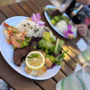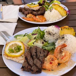 料理は、有名なレナーズのマラサダに加え、プレートディナーにはステーキ、ガーリックシュリンプ、マヒマヒとハワイの王道が詰まってました!