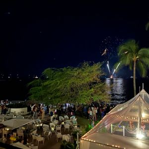 カウントダウンではハワイの海を臨むテラスに移動して綺麗な花火を鑑賞しました。