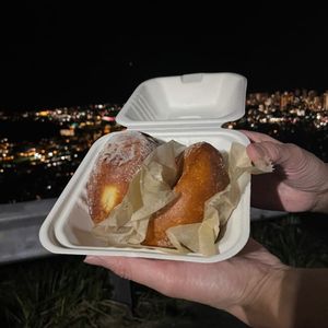 ツアー参加者しか食べられない「ベアフットビーチカフェ」の食事やマラサダ、夜景を見ながらの熱々の紅茶も美味しくいただきました。