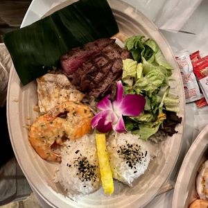 ツアーは最初にビーチ際のお店で演奏を聞きながら夕食。この料理が絶品で、ガーリックシュリンプ、ステーキ、白身ソテーとハワイグルメを凝縮したようなプレートで絶品でした。