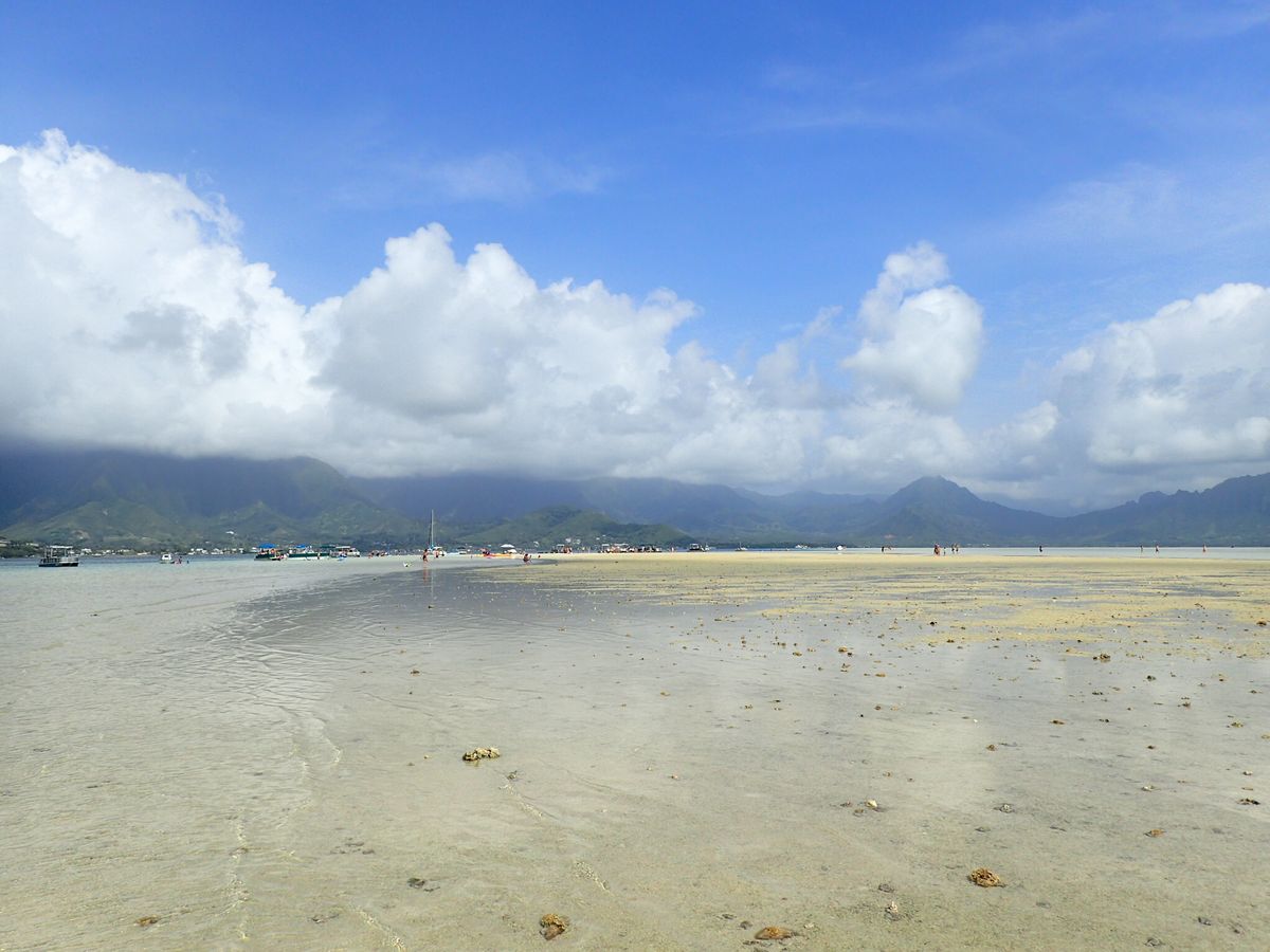 キレイな海が広がり、クアロアランチも望めてダイナミックな景色。サンドバーからは少し離れたところに船は止まり、歩いて散策します。サンゴの砂なのでマリンシューズを用意するといいかも知れません。