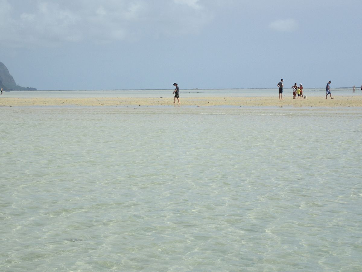 サンドバーは広いのですが綺麗な砂地と海は向かって左のほうで右はデコボコしていました