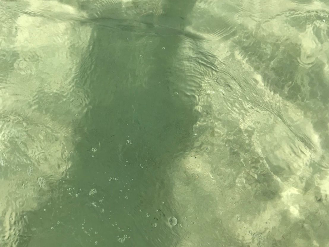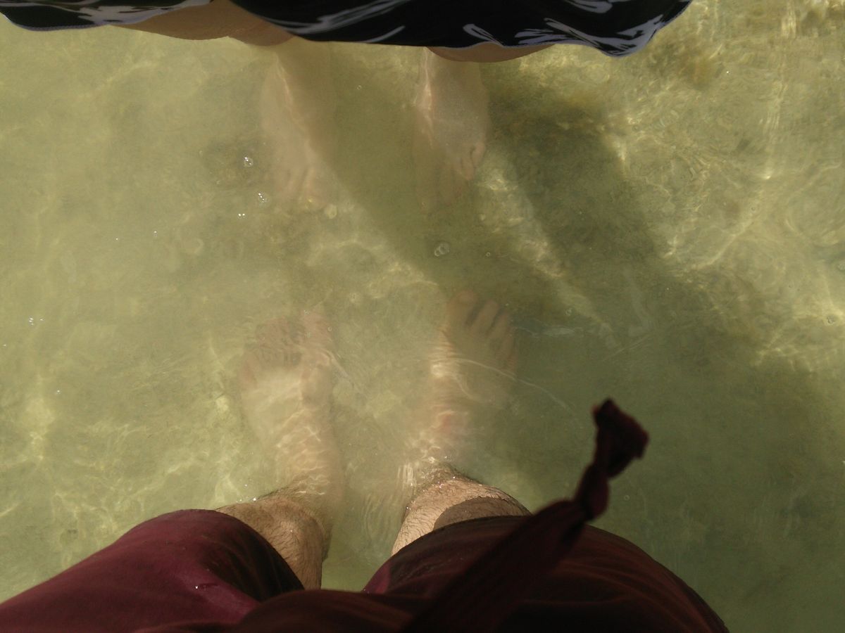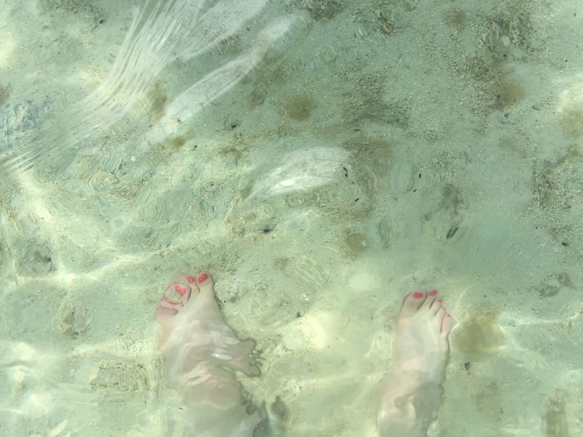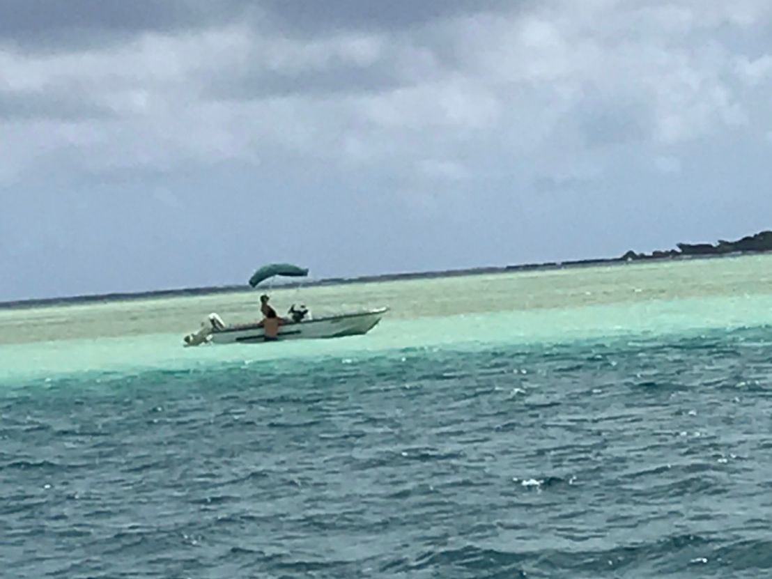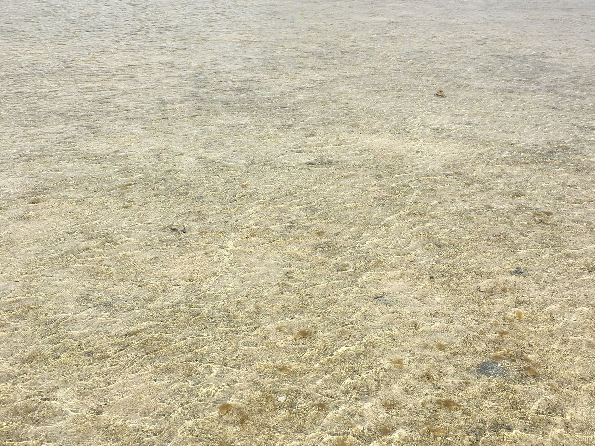 最初にサンドバーに着き、少し離れたところにボートを停めて、海に入ったところは膝下くらいでした。そこから徐々に浅くなって行きます。