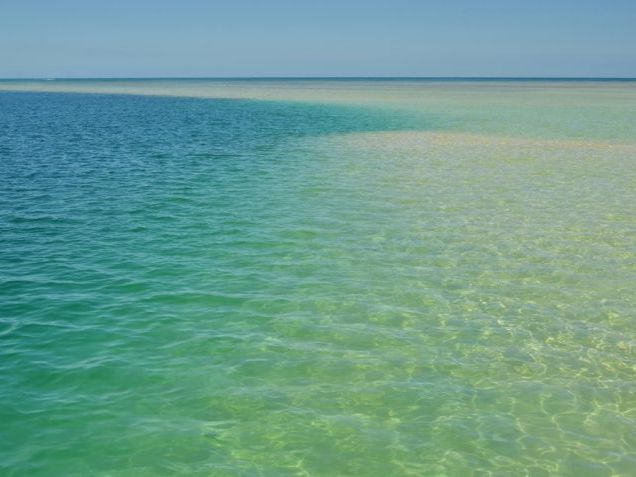 サンドバーに近づくと砂がすでに見えておりひざしたくらいの水のところにおりました