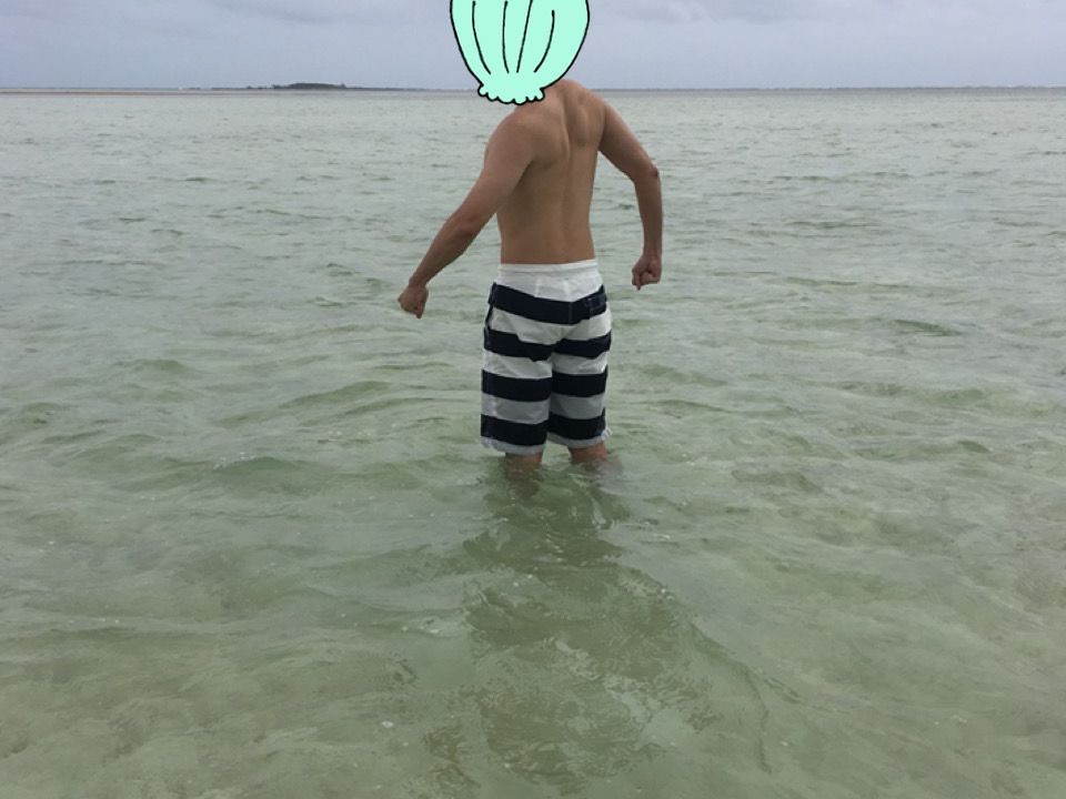 船からサンドバーの浅瀬に行くまで、海の中を少し歩きますが、思ったよりサラサラの砂地では無く、素足だと少し痛いのでマリンシューズがあった方がいいかもしれません。