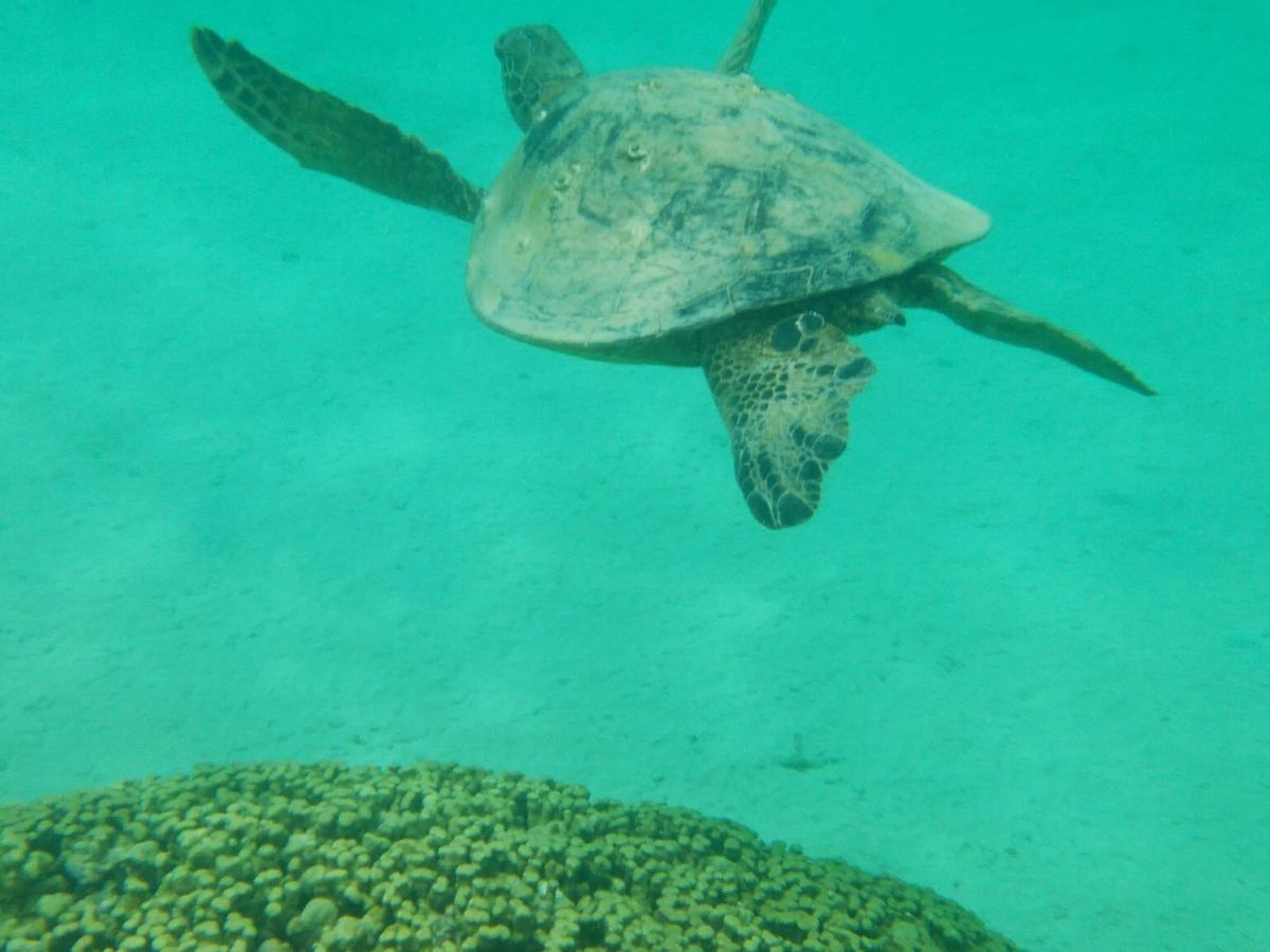 サンドバーから少し離れた場所でシュノーケルをしましたが、ウミガメを見ることができました。