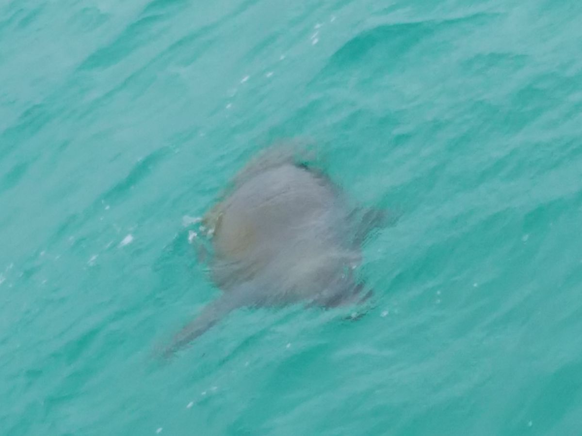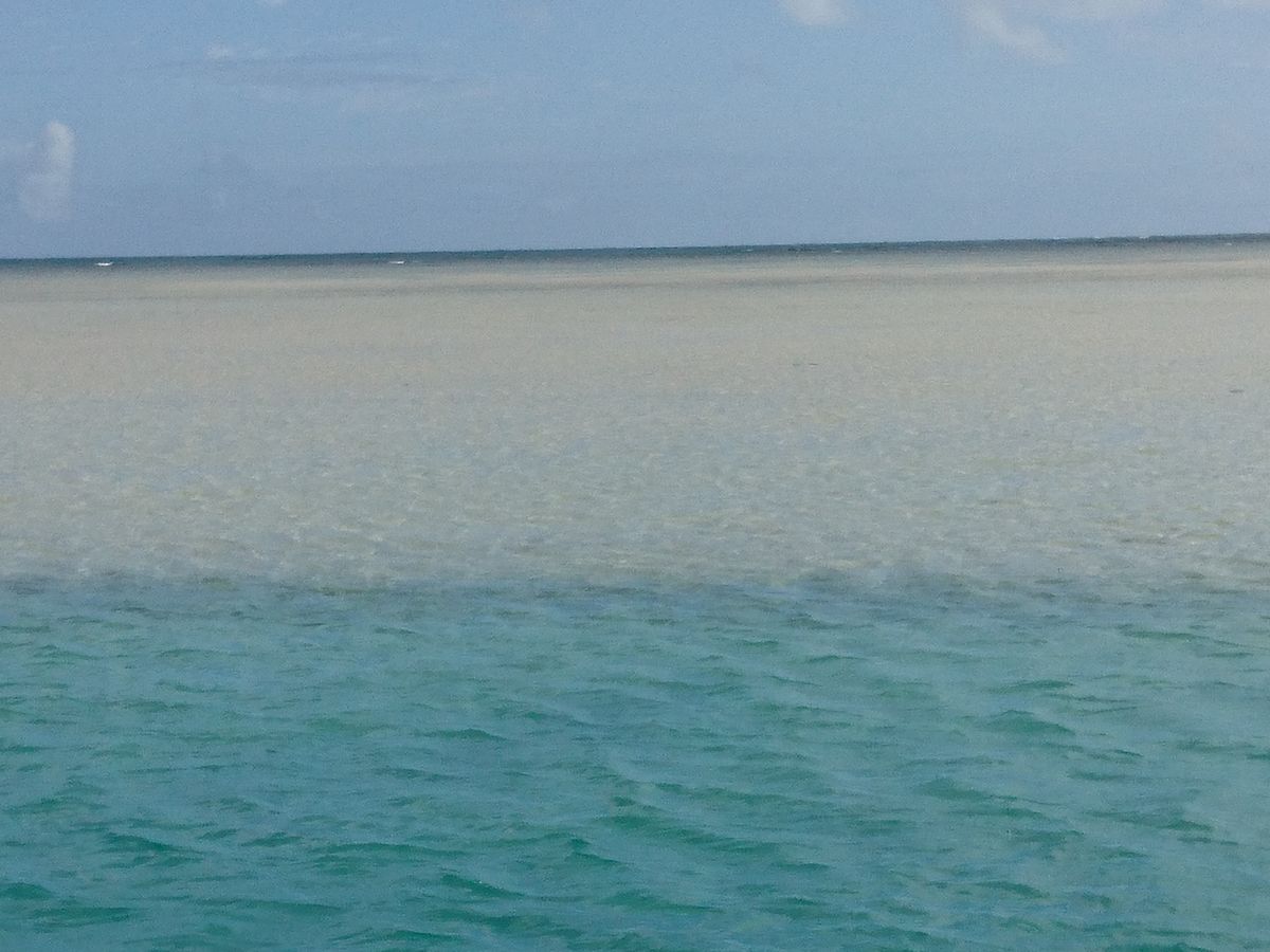 今年は8年ぶりに天気が悪いそうで、2月からずーっと天気が悪いとの事でした。そのためか少し水位も高かったですが、サンドバーの浅瀬で、なんとウミガメがボートの周りを泳いでいきました。