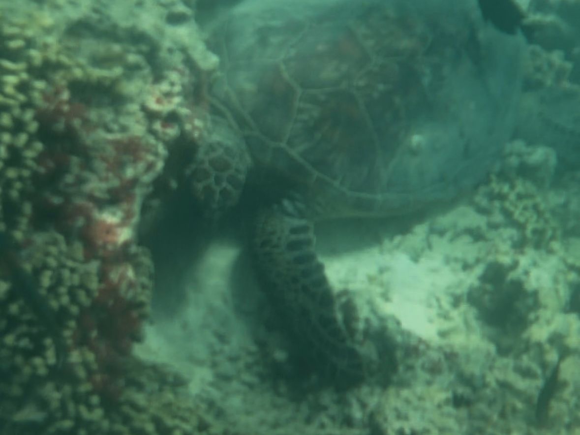 シュノーケル🤿で海亀🐢見つけて、動画撮ったけど、あんまり映ってなくて、残念😢