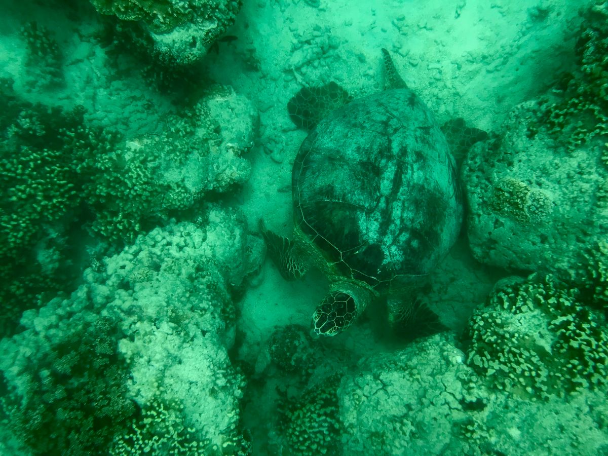 ここで雨が降ってきてしまい、太陽が差し込む綺麗な海中は見られなかったですが、ウミガメも見られました。