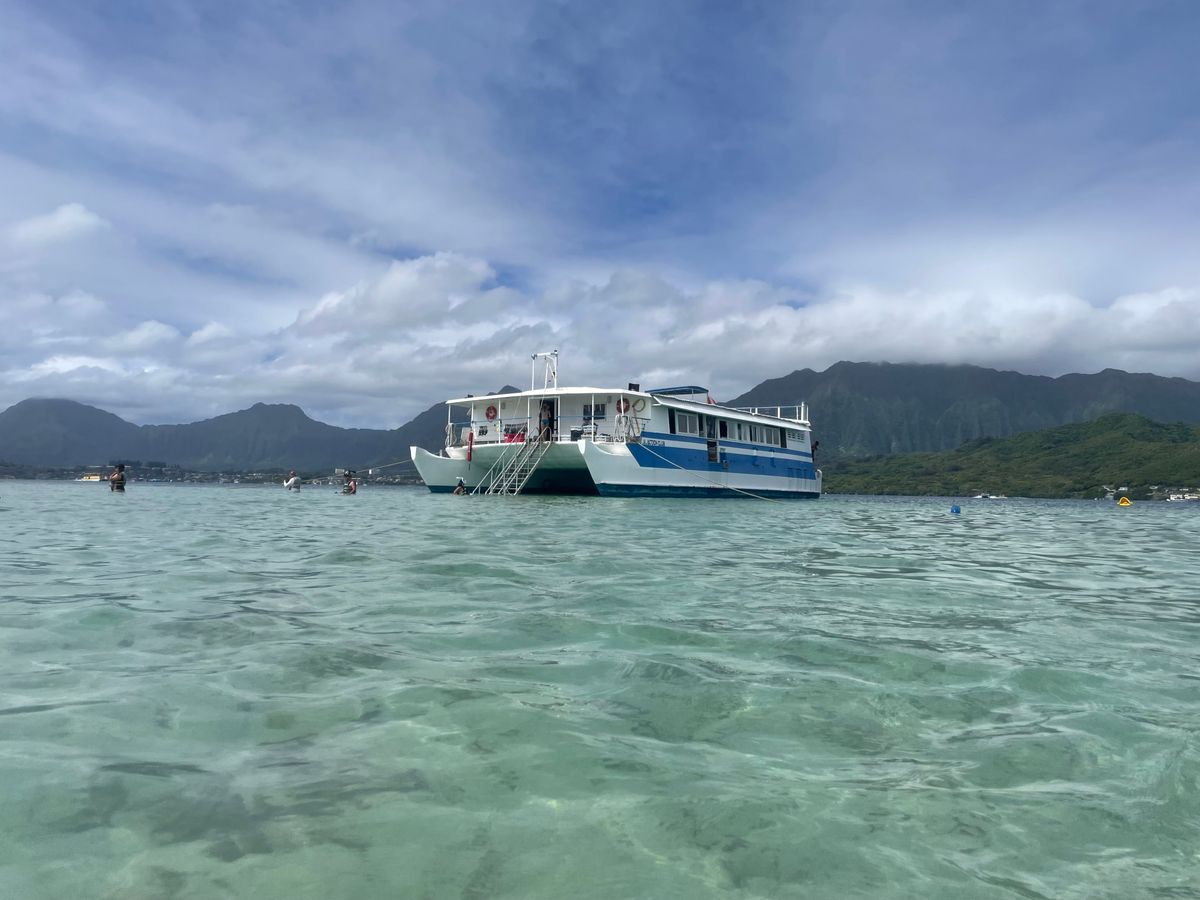 素晴らしいエクスカーションでした。ワイキキからのシャトルを利用しました(追加料金あり)で、他の3つのホテルに立ち寄ったため、約40分かかりました。サンドバーまでのボートは約10分で、ランチは美味しかったです。ボートの音楽は素晴らしく、雰囲気を盛り上げてくれました。曇りの日で雨も降りましたが、肌寒くて理想的ではなかったものの、カヌーライド、パドルボード、シュノーケリングを一つのエリアで一つの料金で楽しむ機会があって楽しかったです。バナナボートとチューブライド(サンドバー到着時に行いました)はとても楽しく、それぞれ約5分続きました。料金に対してもう少し長く感じました。全体的には素敵な午後の体験でしたが、すべてのアクティビティを行わない限り、コストは高いと言えるでしょう。スタッフはプロフェッショナルで親切でした。