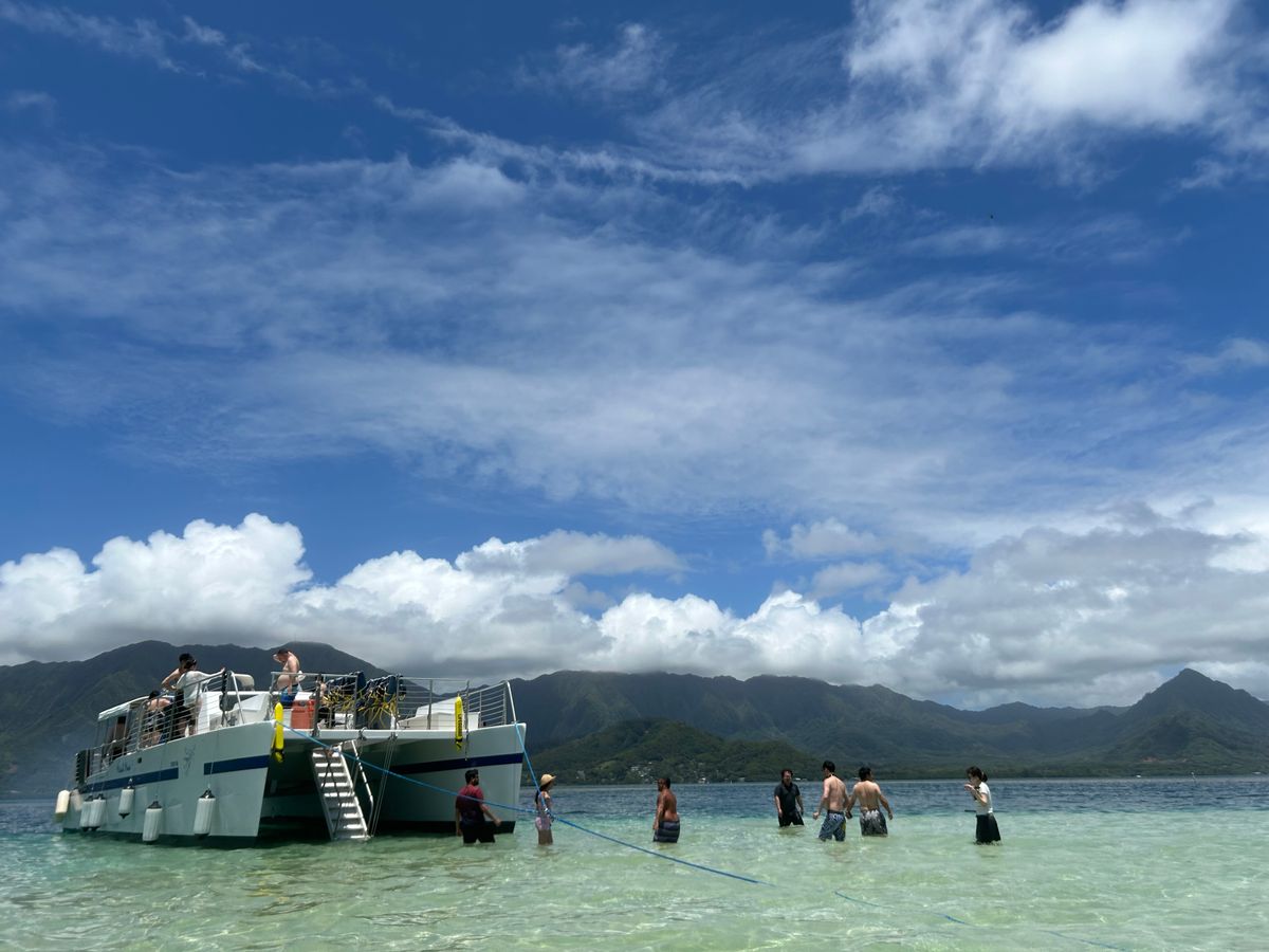 I would like to first start off make sure you leave with plenty of time! We unfortunately got stuck in traffic. And I was so upset thinking we would lose our trip. I ran to see if there was any hope and I received a call from the pleasant captain Sandy asking if we were still joining them. She was sooo nice and eased me letting me know they are still there no problem. We got on and they were so nice to us. I was so embarrassed and flustered we were so late and they were just soooo nice to us. Honestly I wouldn’t have blamed them if they were annoyed but they weren’t (or at least didn’t show it). The whole ride was smooth, the music was amazing and the activities were so fun. I truly believe the service makes an experience and they totally made ours!! It was so fun! Also pro tip bring some adult beverages to relax even more :) maholo to the crew for an amazing time!