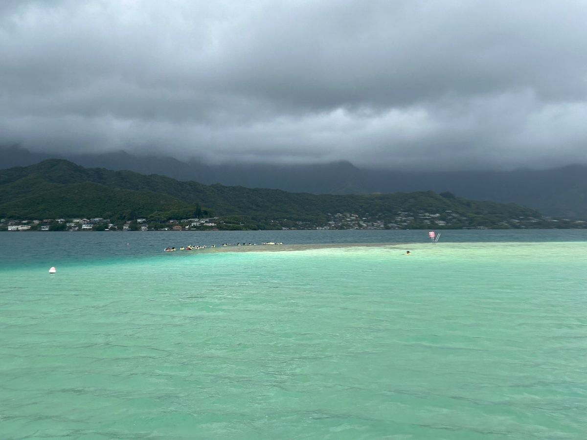 前日の天気予報が雷雨で、朝も曇り、バス移動中も雨が降っていましたが、船に乗るときには晴れてきて、青空のサンドバーを満喫できました。