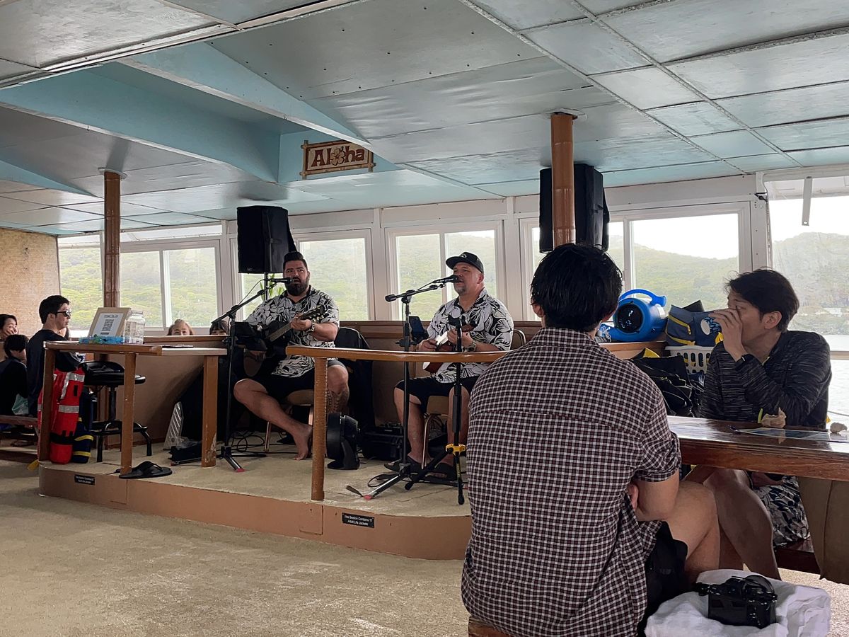 とても楽しい時間でした!クルーとミュージシャンたちが素晴らしかったです。彼らは皆、アロハスピリットを感じさせてくれました。ライブミュージックは本当に素晴らしく、私たちのグループとの相性も良く、とても楽しく、才能もありました。クルーはとても素晴らしく、親切でした。