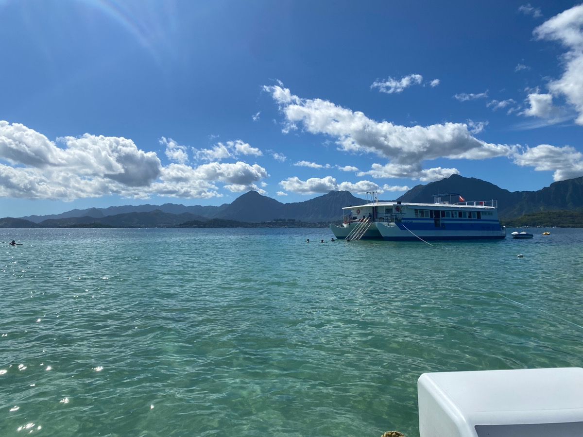 It was not the best weather day… raining but it cleared when we boarded the boat to Kaneohe bay. The trip was pleasant with warm welcoming, music, and a light but satisfying breakfast. The crew were amazing. So helpful and very knowledgeable and safety conscientious.