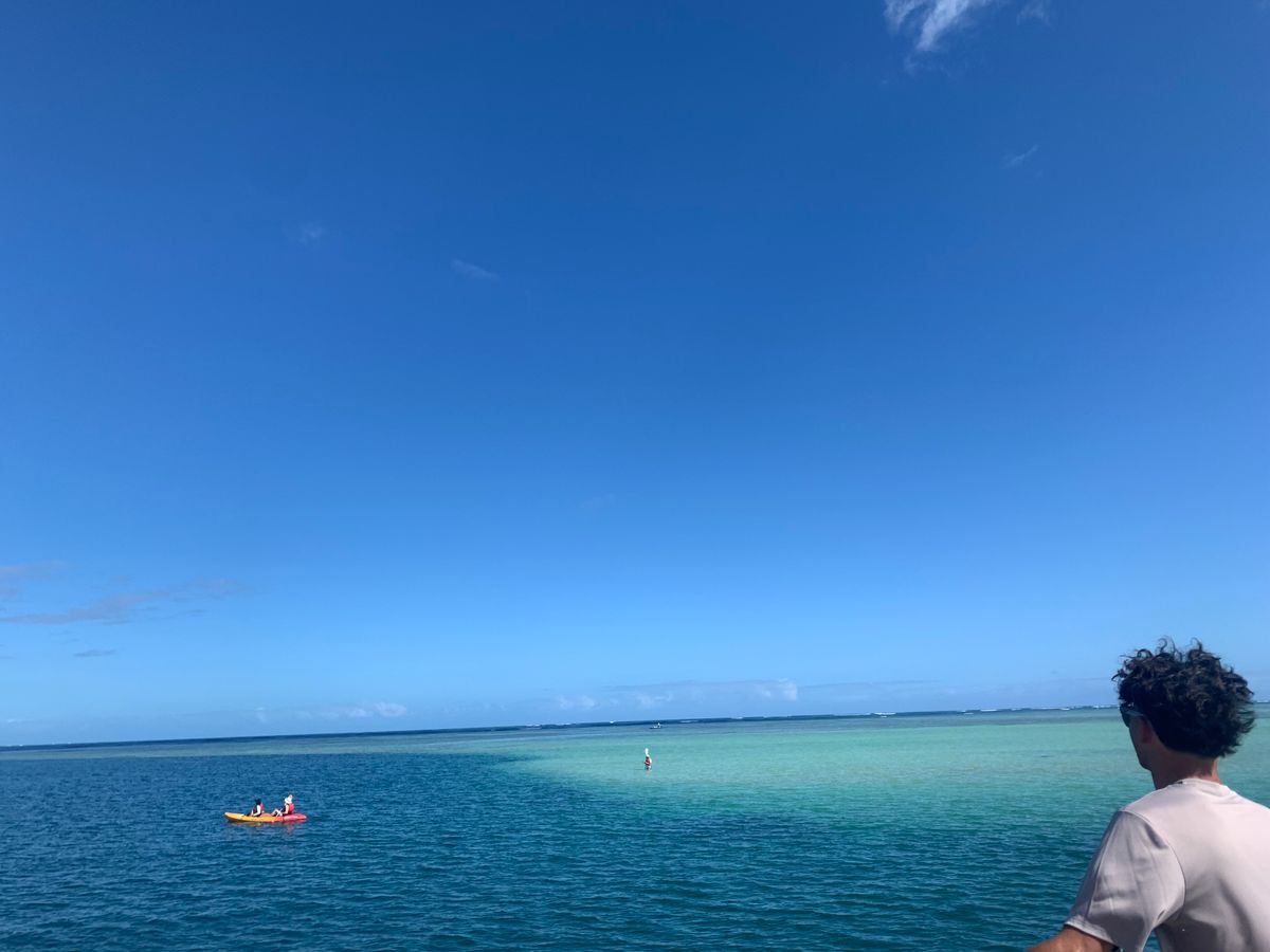 船で海に出て最初はサンドバーへ行き、ビーチバレーや、シュノーケリングの練習、写真撮影等楽しみました。そのあと船の上でハンバーガーを食べ、シュノーケリングスポットに移動しました。