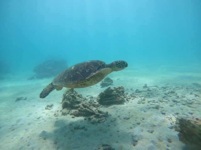 最後のサンゴの周りでのシュノーケリングは、偶然にも大きな亀を間近で見ることが出来て、今まで体験したことが無い、衝撃的な感動をする事ができました。