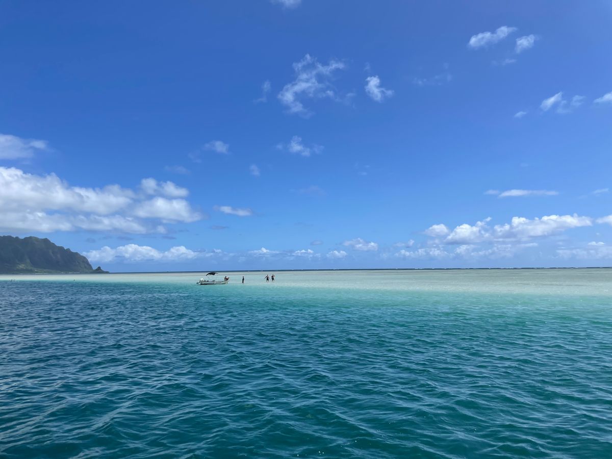 とても素敵なツアーでした。カネオヘの砂州に連れて行ってくれ、ライブ音楽のエンターテイメントも楽しめました。到着後は、シュノーケリング、パドルボード、カヤック、泳ぐこと、または浮遊ラウンジでリラックスするなど、さまざまなアクティビティを選ぶことができました。そこでサンゴ礁や魚を見ることができます。スタッフが手伝い、監視してくれます。荷物はボートに置いておくことができます。水の真ん中にいる良い点は、荷物が安全であることです。砂州では砂が少し粗いことがあるので、何らかの履物を履くことをお勧めします。全体的に、朝や午後を過ごすのにとても良い方法です。時間があっという間に過ぎました。
