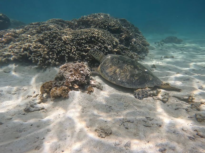 さらに、シュノーケリングではウミガメに5匹程度遭遇でき、ウミガメの息継ぎや泳いでいる姿を見れてとても楽しかったです!!