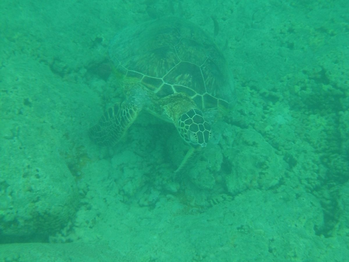 残念ながら視界はそれほど良くありませんでしたが、水中でもウミガメに遭遇し、大興奮でした。