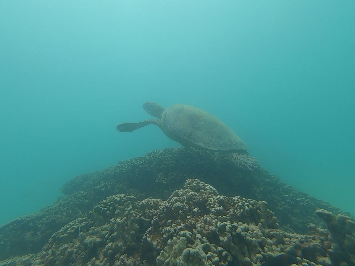 シュノーケリングでは残念ながら海ガメを見ることはできませんでした。ガイドさんはここにいるよ!って教えてくれますが、初めてのシュノーケリングでなかなか思うように泳げませんでした。でも、珊瑚やお魚は沢山見ることができました。感動しました。