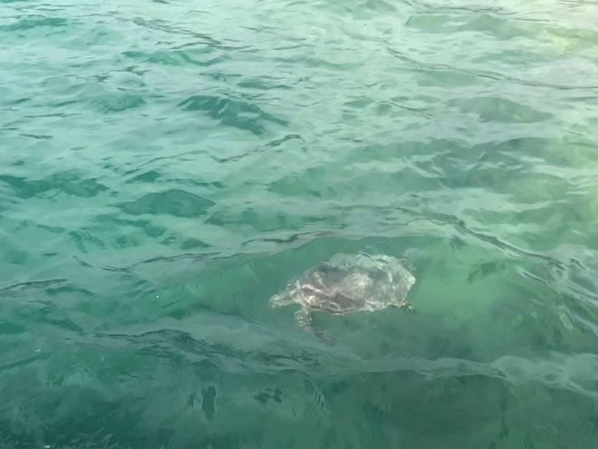 ランチ中に、亀さんが船の近くに来てくれて、間近で見れました!フグさんもたくさん居ました!