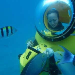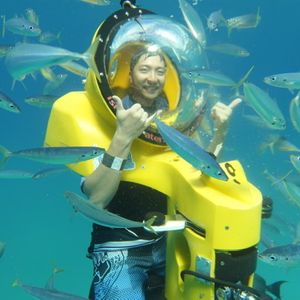 以前グアムでシーウォーカーをやった事はあったのですが新しい水中スクーターは初めての体験で楽しかったです。