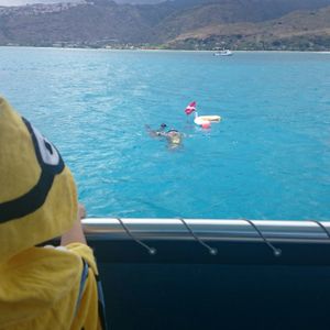 シュノーケリングは次の人が水中スクーターをしている間に勝手に道具を借り楽しむ感じでしたが水中スクーターを終えて船に戻ると寒いと言っている人が多くシュノーケリングはやらない人もいました。スナック菓子とお水は食べ飲み放題でみなさん結構食べてました。ダイバーが撮ってくれた写真は見てから購入するか決めれます。動画は見てませんが私はどちらも購入しませんでした。