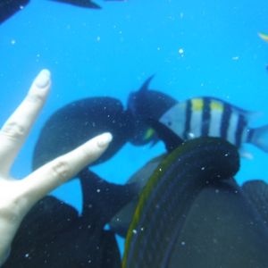 スクーターには餌が付いてて、その餌の網を自分で握ったら自分の手からたくさんの魚が食べに来ました!