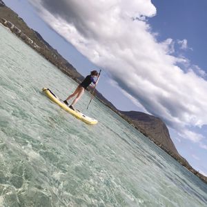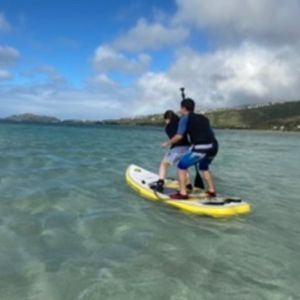 シュノーケリングの後はSUP体験で、初めはバランスを取るのが大変ですがガイドさんのご指導のおかげでしっかり乗る事ができました。