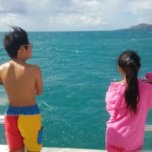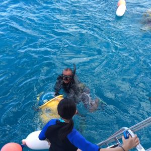 水中スクーターに乗ってみた〜い!と思いいろいろ検討した結果このツアーに参加申込。でも、英語での対応とのことでしたので少し不安がありました。水中スクーターについての説明は日本語のDVDで視れたことと、スタッフの一人は日系4世の女性で、普通の会話は日本語OKでしたので安心して楽しめました。