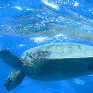 水中スクーターは普通に呼吸ができるので、手軽に海中の世界を楽しめます。サポートのダイバーが側にいて、魚や海亀のいる方向をガイドしてくれ、手の届く近さで海亀が泳いでいるのは正に未知の世界です!