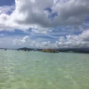 潮の満ち引きなのか、時季なのか?、海水が腰の高さでした。 それでも、ビーチバレーやったり、シュノーケルの練習が出来たり、船の上でのんびりしたり思い思いの時間を過ごしていて皆さん楽しそうでした! シュノーケルは未体験でしたが、とてもとても楽しめました! スタッフの方も、日本人がいらっしゃって、英語と日本語とを交互にしてくださるので安心です。