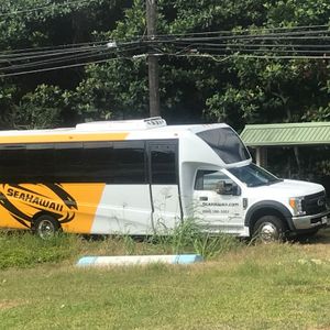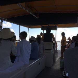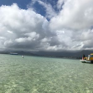 æ°å©æ è¡ã§å€«ãšåå ããŸãããããã«è¿ãã«ãŠããã¯ã¢ããããŠãããã30人çšä¹ããã«ãã³ãã倧ããªè»ã§åºçºã§ããè»å ã¯æºåžã§ã·ãŒãã¯ãã«ã¬ã¶ãŒã§ãã£ãããããªãå¿«é©ã§ããæ¥æ¬èªã®äžæãªãã£ããã³ã®é転ã§1æéçšã§æž¯ã«å°çããã€ã¬ãæžãŸãããè¹ãžãæŽå€©ã®äžãµã³ãããŒãžåãããŸãããã©ãã©ããæµ·ã¯ãšãŠãç©ããã§çããMAXïŒïŒã¹ã¿ããã®æ¹ãè¹å ãçãäžãåçãæ®ã£ããããªãããã£ãšããéã«ãµã³ãã°ãŒãžãæ°Žã®éæåºŠãé«ããéãç«ã£ããšããã¯èäžã®é«ãã仿¥ã¯å¹žéã«ãç æµãæµ·ã®äžã«åºãŠãŸããïŒïŒããããæ©ããŠåãããŸãããç æµè¿ãã¯ç³ãããè¶³è£ãçããŠæ©ããªããã»ãšãã©ã®äººãæå¿µããŠãŸãããããªã³ã·ã¥ãŒãºãããã°è¯ãã£ããªãã§ã綺éºã§ãã£ã±ãåçãæ®ããŸããïŒãã®åŸã¯å Žæãç§»åããŠã·ã¥ããŒã±ãªã³ã°ã§ããæµ·ã«é£ã³èŸŒã¿æµ·ã®äžãèŠããŠæ³³ãã§ãããšããªããªããšããŠãã¬ã¡ããã£ã¡åãã£ãŠæ³³ãã§æ¥ãŠãããŸãããéè¿ã§èŠããŠå¹žãããåž°ãã¯ãèåã飲ã¿ç©ãªã©ã®ãã¬ãŒã³ãããã倧æºè¶³ãªãã¢ãŒã§ããã