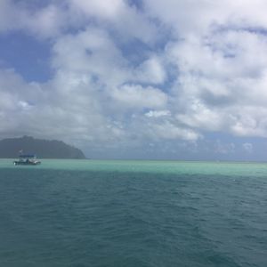 旅行前からサンドバーはとても気になってました、しかし今回3泊5日の日程だったため日本での事前予約はやめてハワイに来てから余裕があったら…と参加前日に急遽ネットで予約しました。予約確定まで時間もかからず、当日は安心してツアーに参加することが出来ました。朝天気があまり良くなかったので船長さんが晴れてくるまでしばらくの間船で旋回してくださり、太陽が出るまで時間を稼いでくださいました。そのおかげで船を降りる頃には輝く青い海に降り立つことが出来ました。楽しみだったウミガメは遠目でしか遭遇出来ませんでしたが、大満足の時間を過ごすことができました
