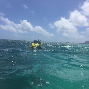 キャプテンブルース天国の海のパネルを持った運転手さんが指定の待ち合わせ場所でピックアップして下さいます。ワイキキから港までは50分ほど。当日は朝から天気が悪く、強風と曇り空で海に入るのが少し寒かったです。シュノーケリングでは寒いのでウエットスーツを借りました。サンゴ礁近辺を泳いでいると、ホヌに3回も会うことが出来ました。防水カメラまたはスマホの防水カバーの持参をおすすめします。ハワイにまた行くときは天気の良い日にリベンジしたいと思います。