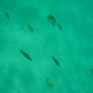 亀さんは船の上から影が見えた程度でしたが、シュノーケリングはたくさんの魚に囲まれて満足!
